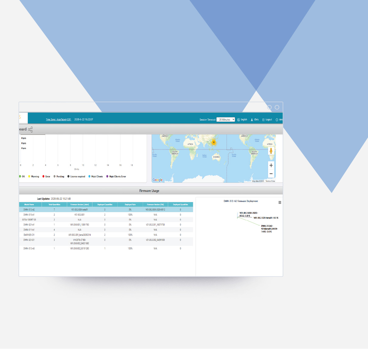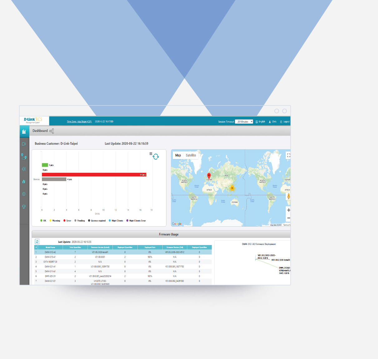 D-ECS enables a comprehensive view of network infrastructure at a glance with real-time monitoring and status reports. All edge device locations are conveniently shown in an integrated Google Maps display.