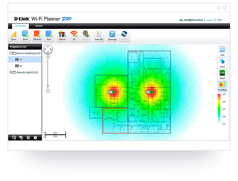 The Wi-Fi Planner Pro tool enables you to see Wi-Fi environments prior to deployment. It makes planning and communicating WLAN deployments with clients a lot easier. Wi-Fi Planner Pro is one of the free tools available on the D-Link Partner Portal which is exclusive to D-Link Partners.![]()